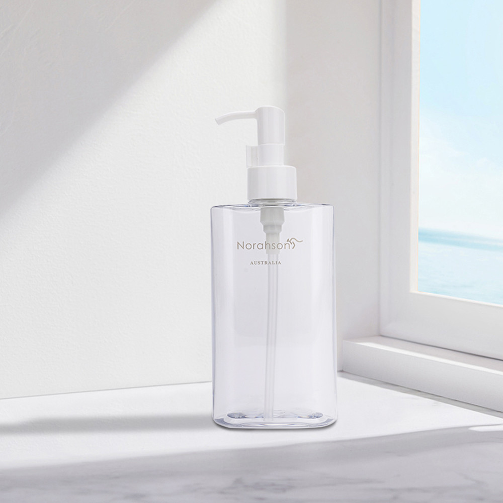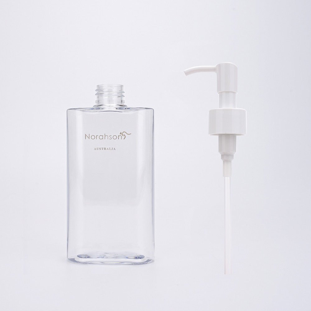 Chai bơm lotion hình vuông trong suốt.Vật liệu thân thiện với môi trường, không màu và không vị, có thể được tái chế.Miệng chai hình xoắn, dễ dàng rót, độ kín tốt.