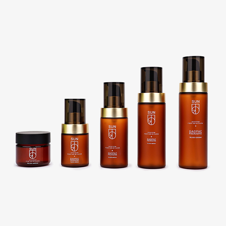 Bộ sản phẩm chăm sóc da, hình trụ màu hổ phách.Dễ dàng mang theo, không dễ biến dạng, độ bền cao.Miệng chai hình xoắn ốc, dễ dàng rót.Vật liệu thân thiện với môi trường hỗ trợ tái chế