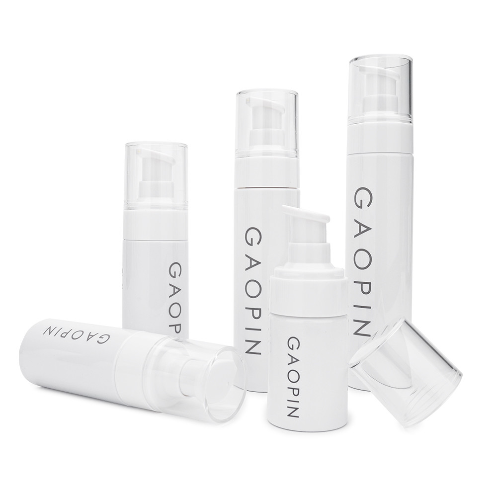 Chai bơm kem dưỡng da đa dung tích và đa chức năng, thiết kế ngắn gọn, in lụa trắng, hình trụ, dễ dàng mang theo, chiếm không gian nhỏ, trợ giúp đắc lực trên đường, có thể được sử dụng để đóng gói kem dưỡng da, kem nền, sữa rửa mặt, tinh chất, v.v.