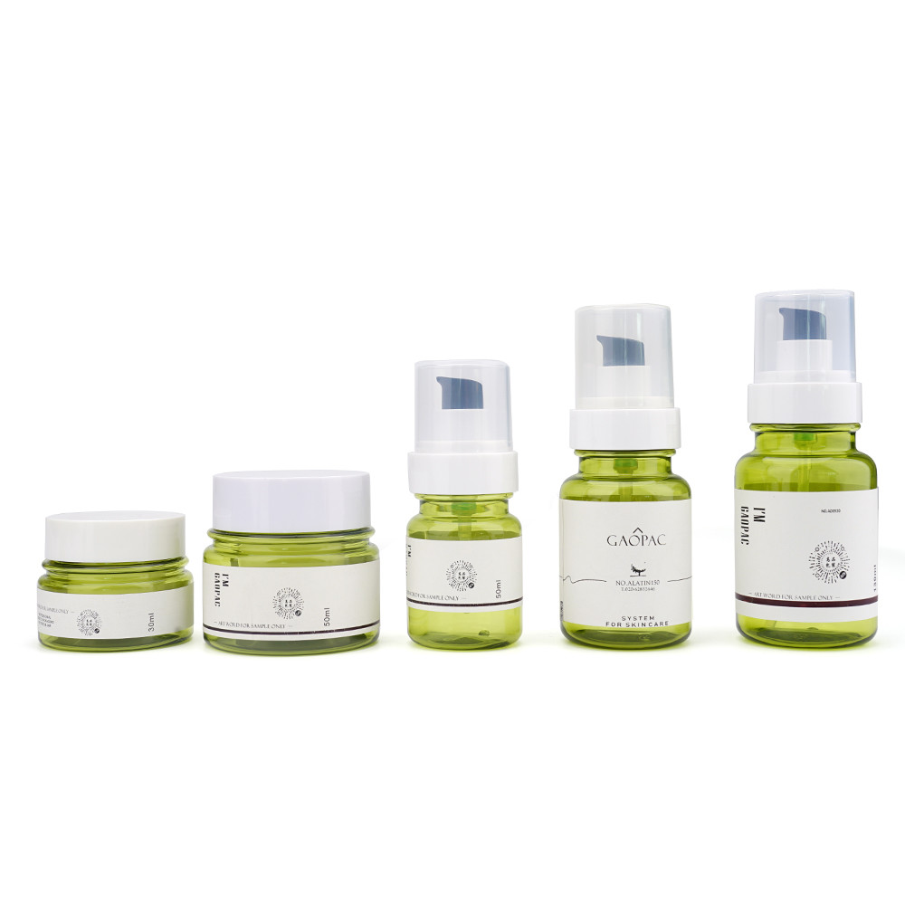 Gói chăm sóc da màu xanh lá cây chai rỗng, đa quy cách đáp ứng các nhu cầu đi lại khác nhau.Thiết kế miệng chai dạng vặn để rót ngược dễ dàng.Vật liệu thân thiện với môi trường, có thể tái chế.Nhỏ và nhẹ, và dễ mang theo.