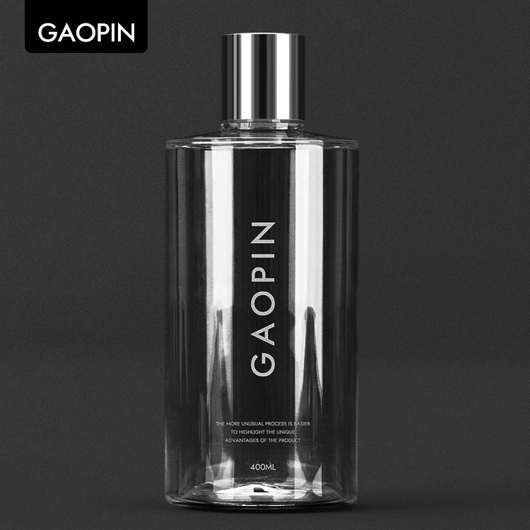 Chai dầu gội hình trụ trong suốt, Chất liệu PET, sờ mềm.