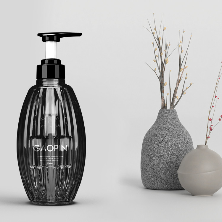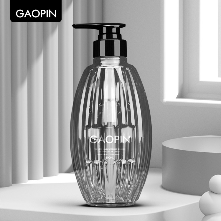 Chai dầu gội hình trụ trong suốt, Chất liệu PET, sờ mềm.